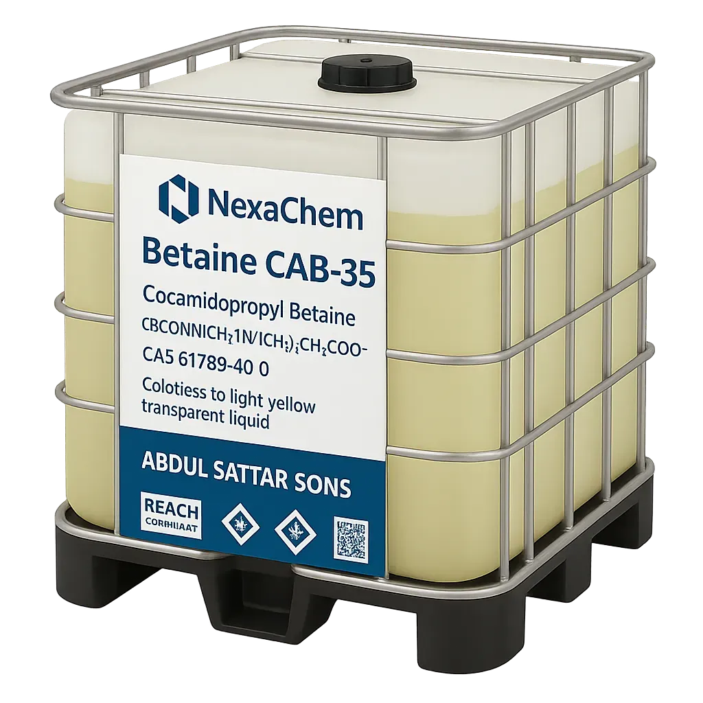 Abdul Sattar Sons Exports will provide superior quality Betaine CAB35 to the diverse needs of industries worldwide. Our commitment to excellence, all-inclusive packaging options, and reliable logistics make us the ideal partner for businesses seeking consistent, high-standard chemical products. Whether your business requires Betaine CAB35 for personal care products, cosmetics, or industrial cleaning solutions, Abdul Sattar Sons Exports has tailored solutions and unparalleled service. Trust us for Betaine CAB35 solutions that deliver consistent quality, performance, and safety for your industrial and commercial needs.