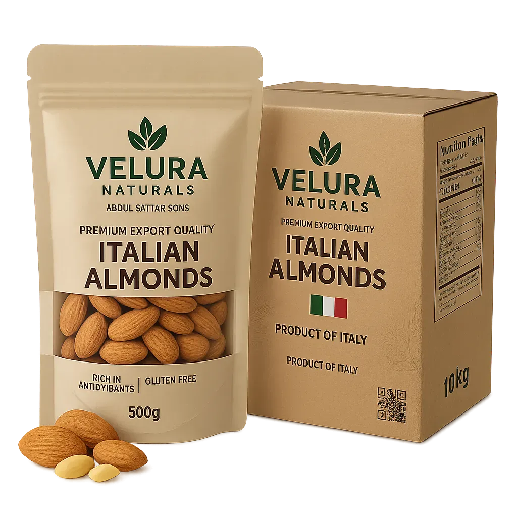 Abdul Sattar Sons packages Italian Almonds in various forms that can suit wholesale and retail customers. In the case of large-quantity purchases, there are sacks and almond cartons that benefit Wholesalers, retailers, and manufacturers. These bulk packages make it easy to transport large quantities of almonds, with the packaging protecting them from moisture, pests, and damage.